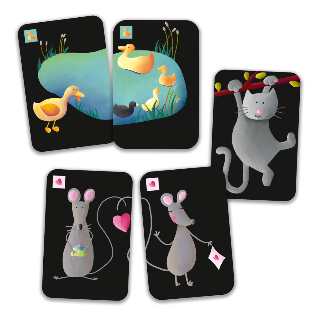 A DJECO Mistigri párosító kártyajátéka a "Fekete Péter" játék szabályait követi egy kis extra kiegészítővel a gyerekek számára!