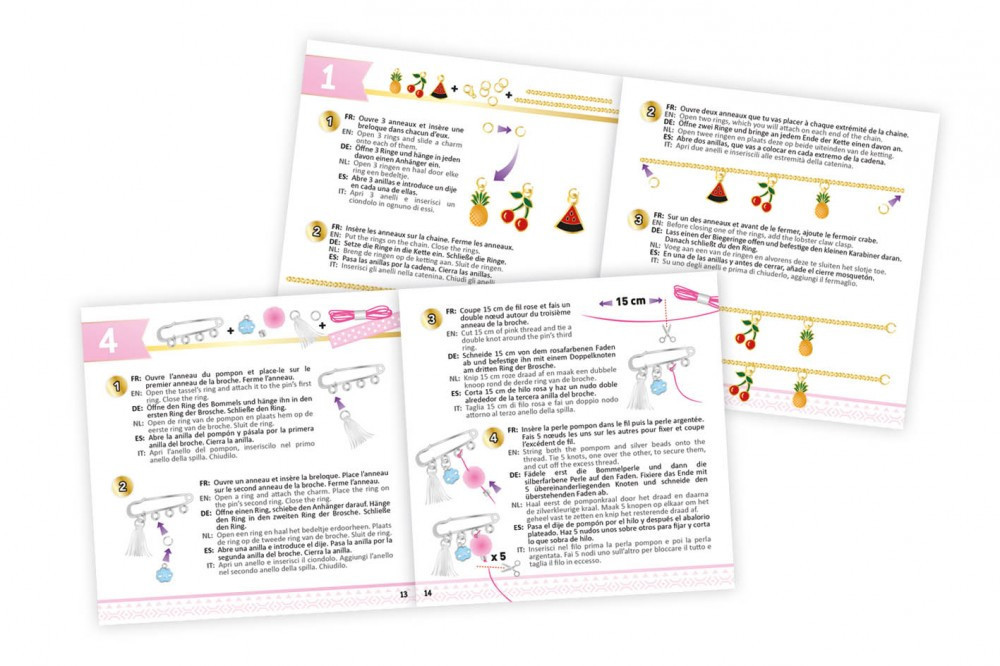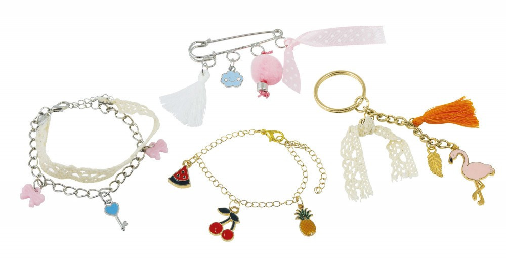 Négy féle kawaii ihlette ékszer készítő készlet, medálok, szalagok és színes csomók segítségével!