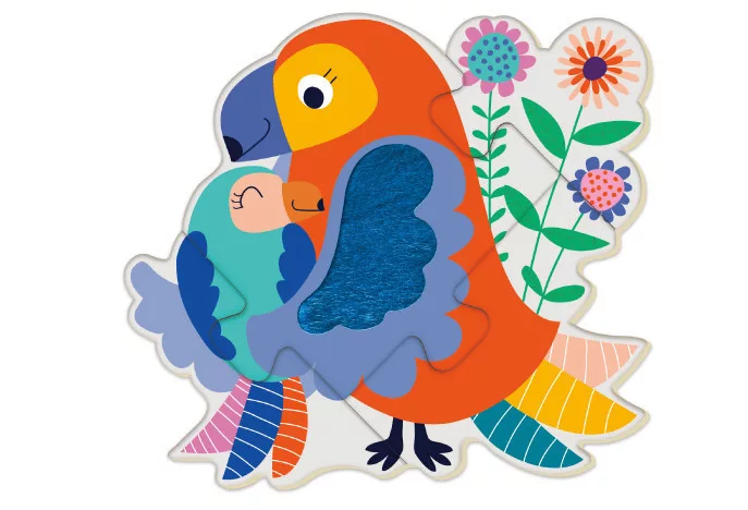 Minden dobozban 4 vadon élő állat képe található, melyek mindegyike 4 darabból rakható össze. A könnyű, fából készült elemek texturált felületeket tartalmaznak, hogy a kicsik tapintását is fejlessze, miközben a kirakóval játszanak.