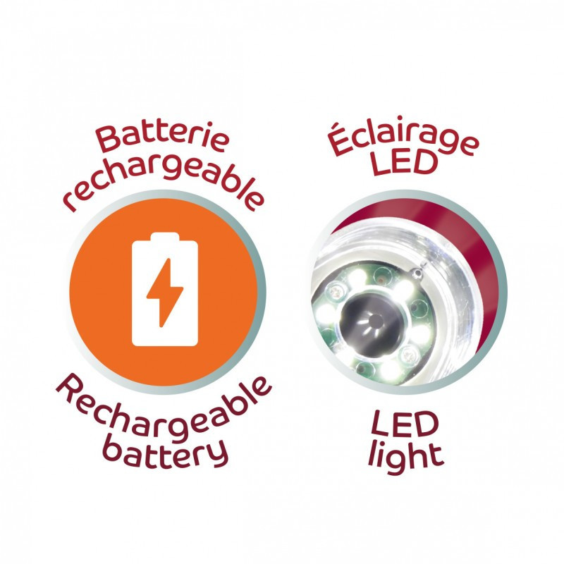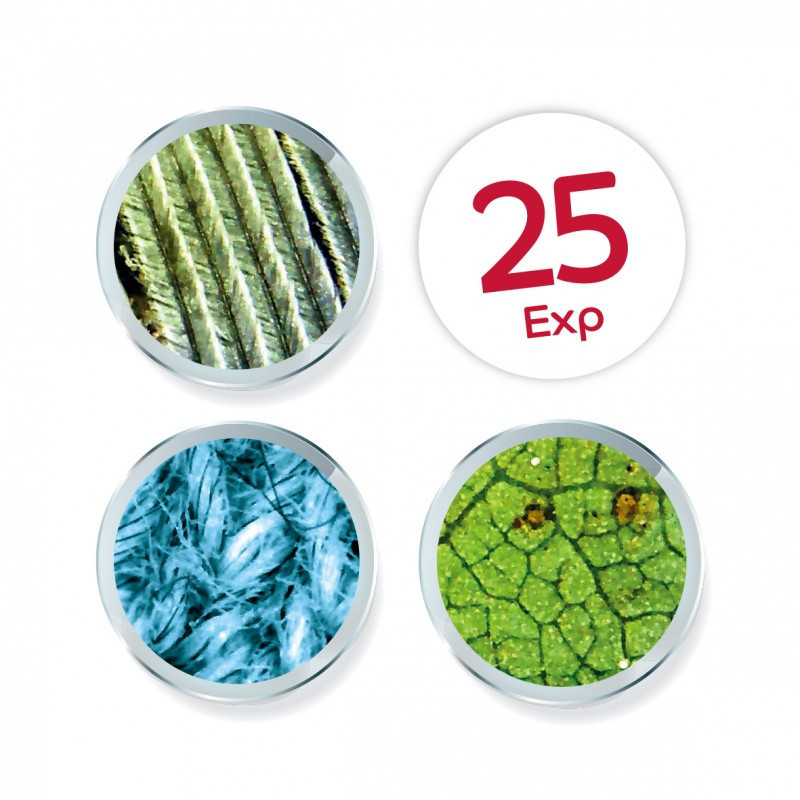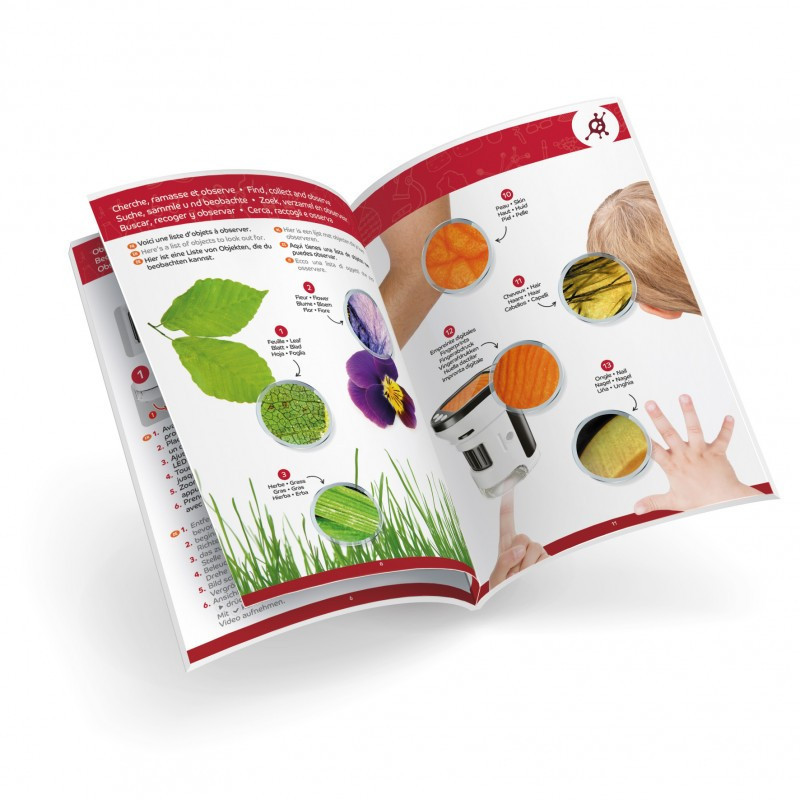 Ez a kézi videomikroszkóp 200x-osés 1000x-es nagyítás között állítható. A LED-es világítás és fókuszáló rendszer precíz és tiszta megfigyeléseket tesz lehetővé. Ideális többféle megfigyelésre: növényi sejtek, tollak, rovarok, anyagok, stb. Az 5 cm-es képernyő valós idejű megfigyelést tesz lehetővé. Készíts fényképeket és videókat megfigyeléseidről a belső memória segítségével (akár 50 fénykép).
