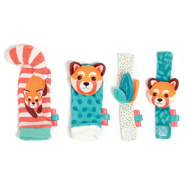 Ez az aranyos vöröspandás szett, minden kisbabának tetszeni fog. Színpompás megjelenésüknek és különböző zörgő-csörgő hangjaiknak köszönhetően remek időtöltés biztosítanak majd kisbabádnak!