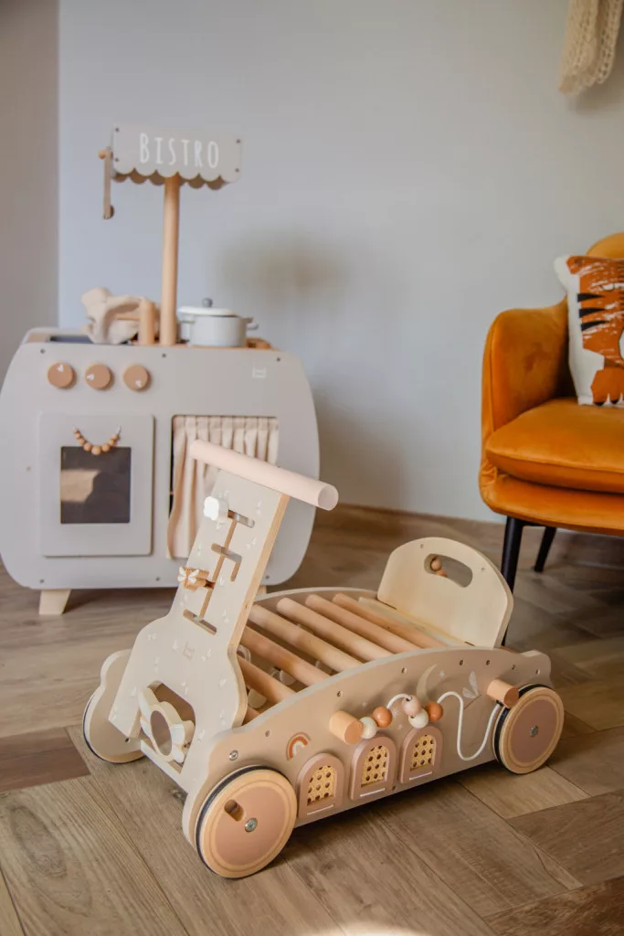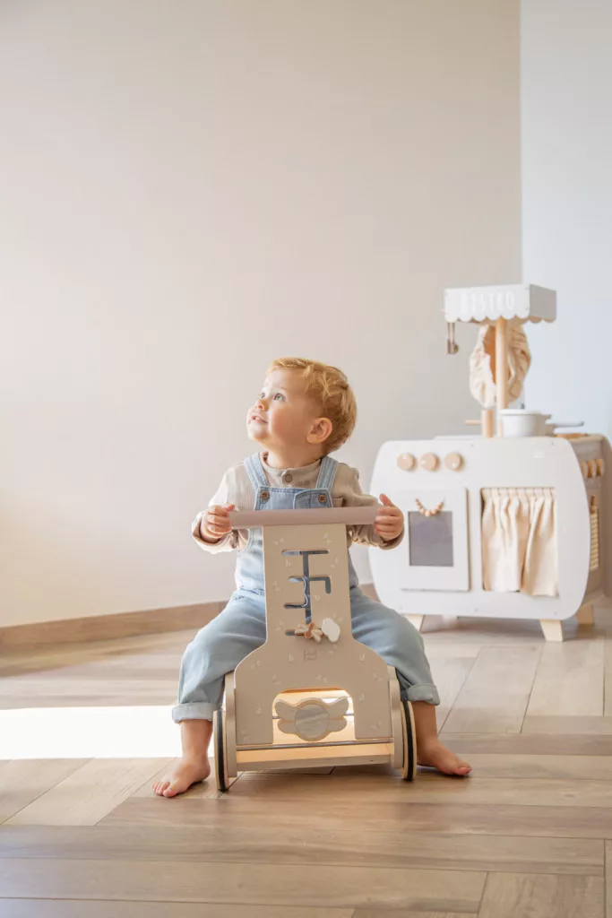 A Label Label 3 az 1-ben Hintaló, Járássegítő és Kismotor nemcsak tartós és minőségi fából készült, hanem a letisztult, modern dizájnja révén a gyerekszoba igazi dísze is. A finom, nugát színek és a lekerekített formák minden apró részlete gondoskodik arról, hogy a játék biztonságos és hívogató legyen a legkisebbek számára is. Színének köszönhetően egy szuper unisex játék, melyet, még a kistesó is megörökölhet.