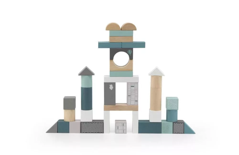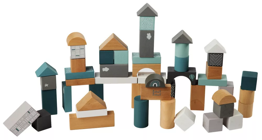 Label-Label 50 darabos fa építőkocka készlet - Zöld építőkocka