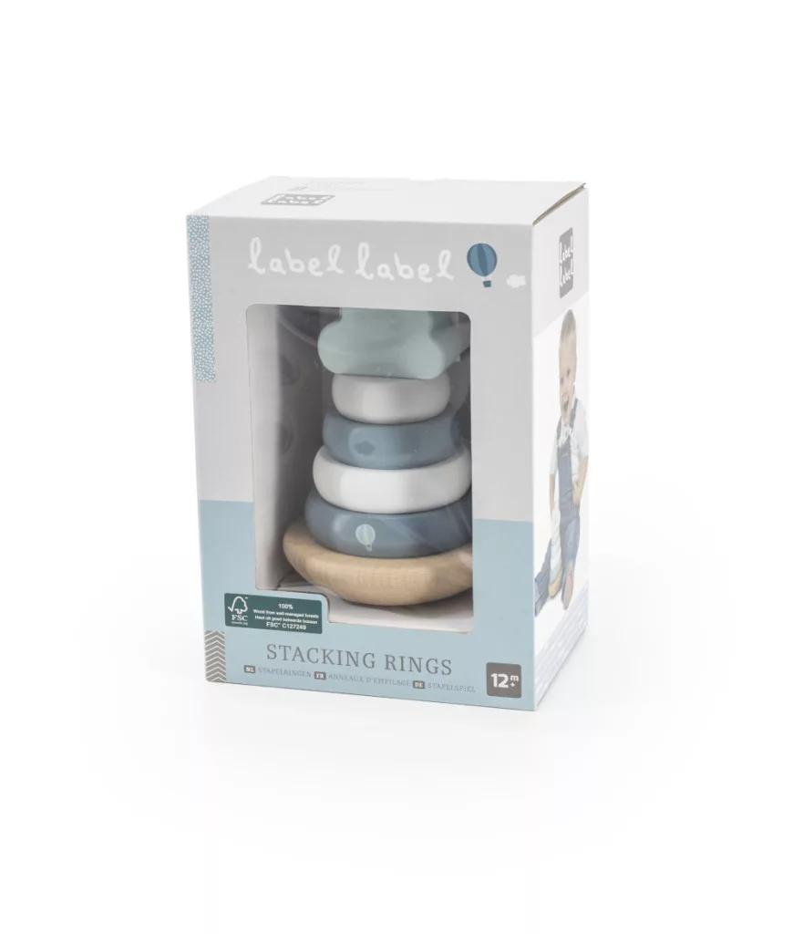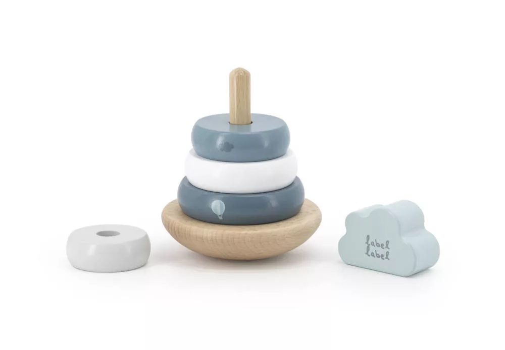 A Label Label zöld színű montesszori torony az elemek egymásra helyezése közben ide-oda mozog, ezzel fejlesztve a gyermek szem-kéz koordinációját.