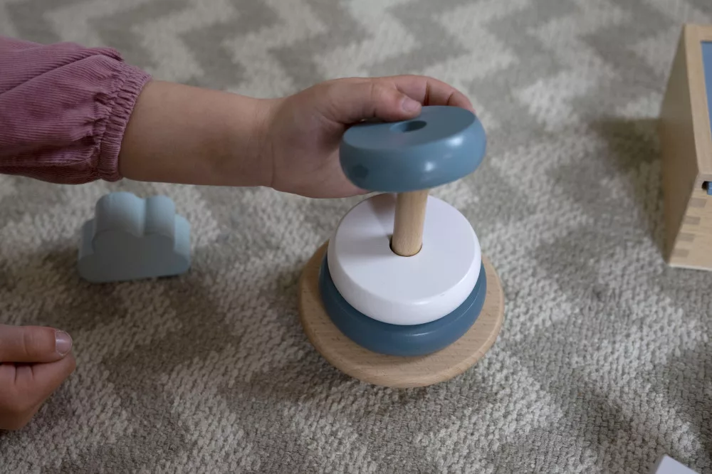 A fából készült gyűrűket és elemeket a kis kezek könnyen meg tudják fogni. Építsd fel nagyobbtól kisebbig, kisebbtől a nagyobbig vagy akár színek szerint. Bármely "feladat" mellett is dönt a gyermek, játék közben fejlődik a szem-kéz koordinációja és a logikus gondolkodáshoz szükséges képességek.