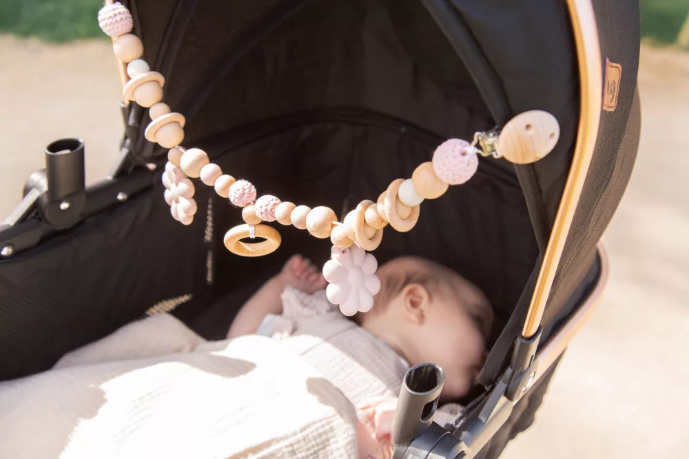 Ezzel a vidám Label Label Flower babakocsilánccal gyermeke nem fog unatkozni a babakocsiban, elalvás előtt tud nézegetni! Ezzel a rózsaszín lánccal a babakocsit is extra színessé varázsolhatod.