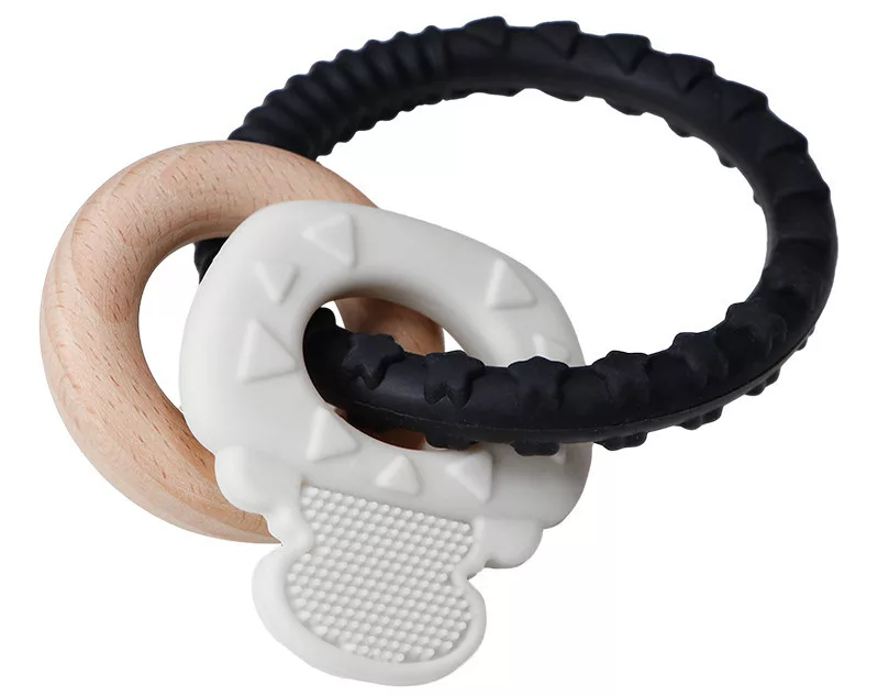 Label-Label - Silicone & Wood rágóka - Fekete-fehér