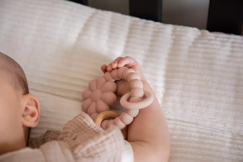 Label Label -Silicone & Wood virág alakú rágóka- Rózsaszín