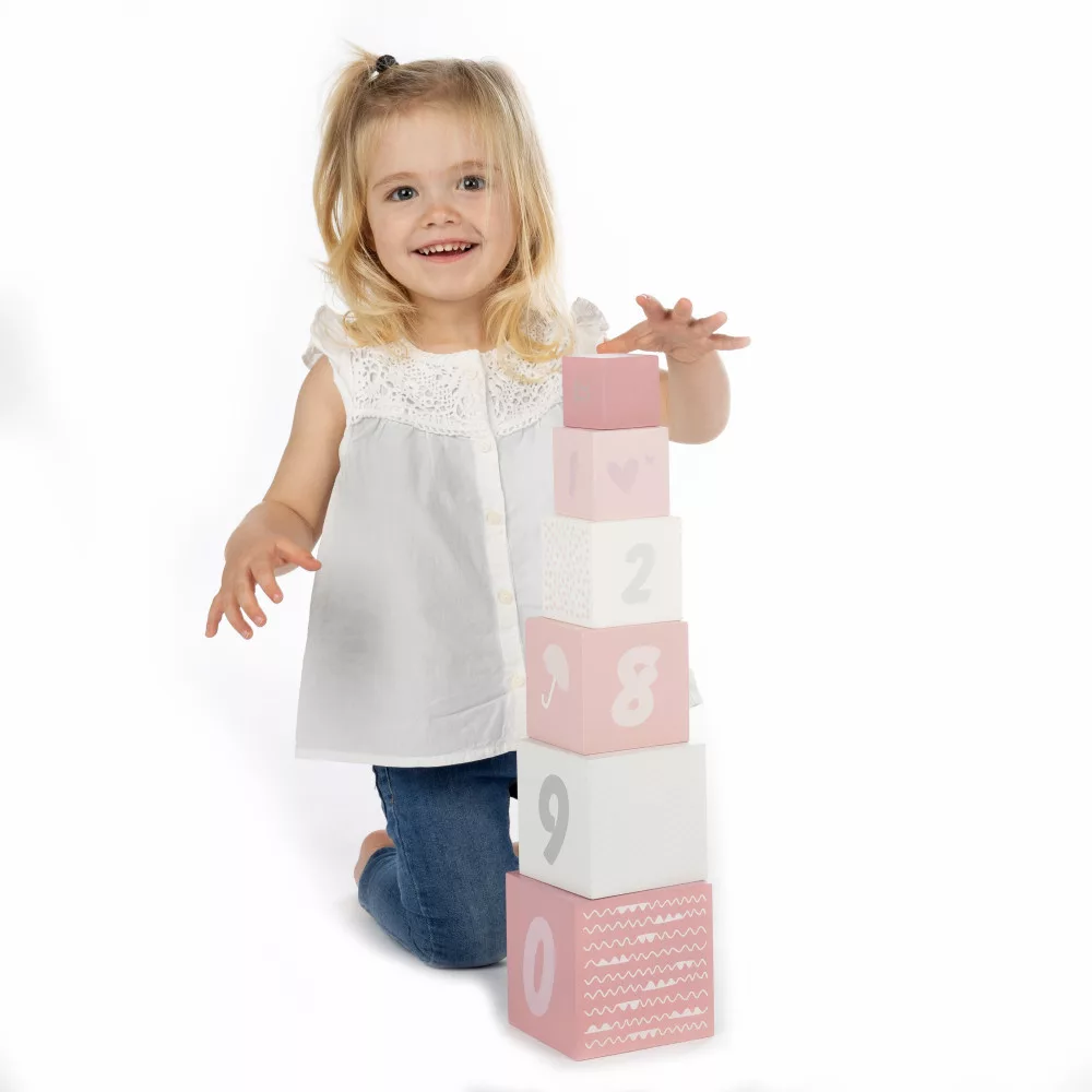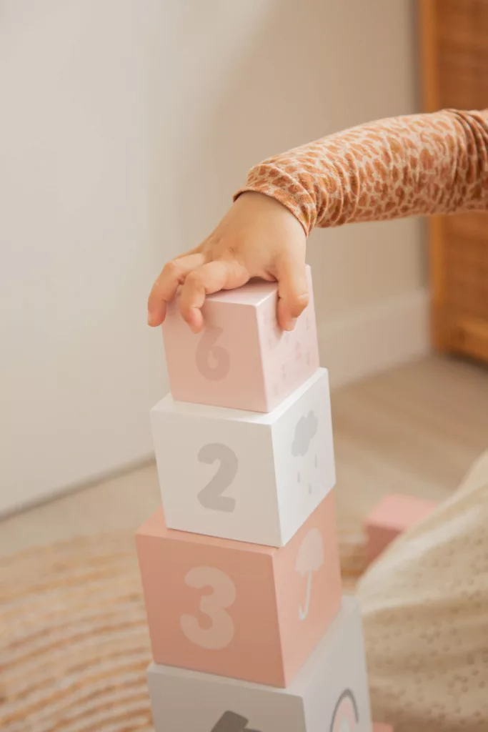 A teljes torony magassága 48 cm. A torony minden oldalán más-más mintát találhatsz vagy a számokat 1-10-ig. Kedves pasztell színeivel, minden kislány tetszését elnyeri.