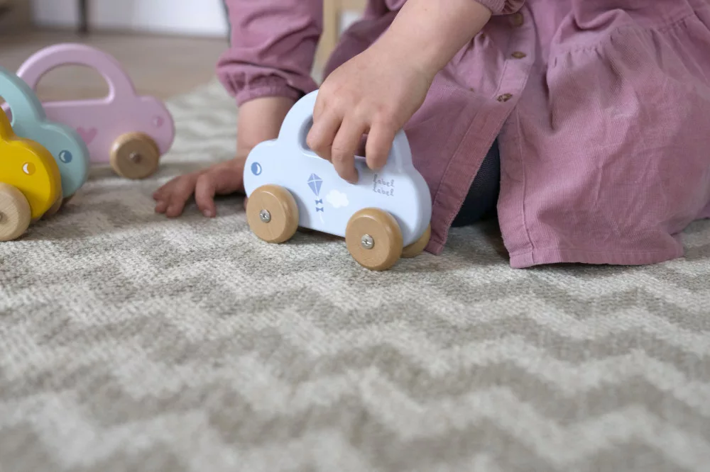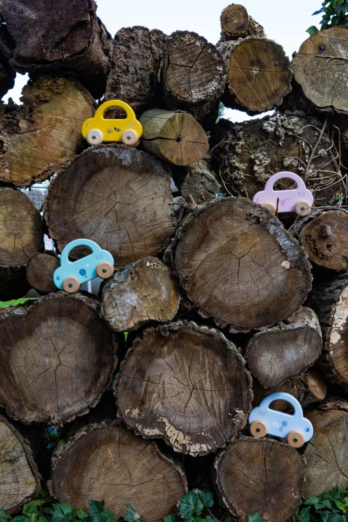 A kisgyermekek könnyedén megfogják az autót a fogantyúnál, hogy az autót vezesse, vagy elvigye, ahová csak akarja. Az autó áramvonalas kialakítása, a lágy színek a természetes fa kerekekkel kombinálva tökéletesek a kisgyermek motoros készségeinek serkentésére és fejlesztésére.