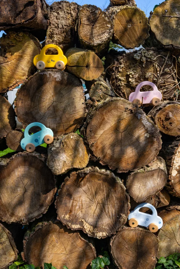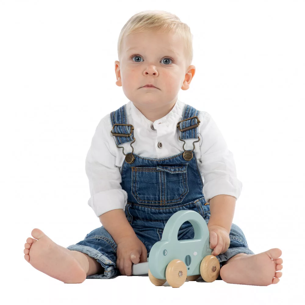 A kisgyermekek könnyedén megfogják az autót a fogantyúnál, hogy az autót vezesse, vagy elvigye, ahová csak akarja. Az autó áramvonalas kialakítása, a lágy színek a természetes fa kerekekkel kombinálva tökéletesek a kisgyermek motoros készségeinek serkentésére és fejlesztésére.