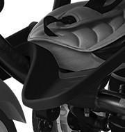 • Az egészen picik számára plusz lábtartóval szerelték fel. Ez a lábtartó leszerelhető ha már nincs szükségetek rá. A nagyobbaknak felhajtható lábtartója van, ha épp nem hajtja pedállal a triciklit.