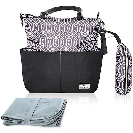 Szuperdivatos pelenkázótáska, ami színeinek köszönhetően bármely babakocsival használható. A babakocsi tolókarjára akasztható, vállon és kézben is hordozható.