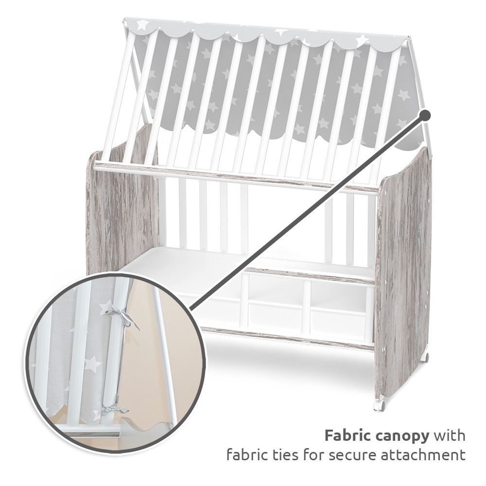 • Textil baldachin integrált rögzítőkkel, amely lágy, meghitt hangulatot teremt és biztonságosan rögzíthető