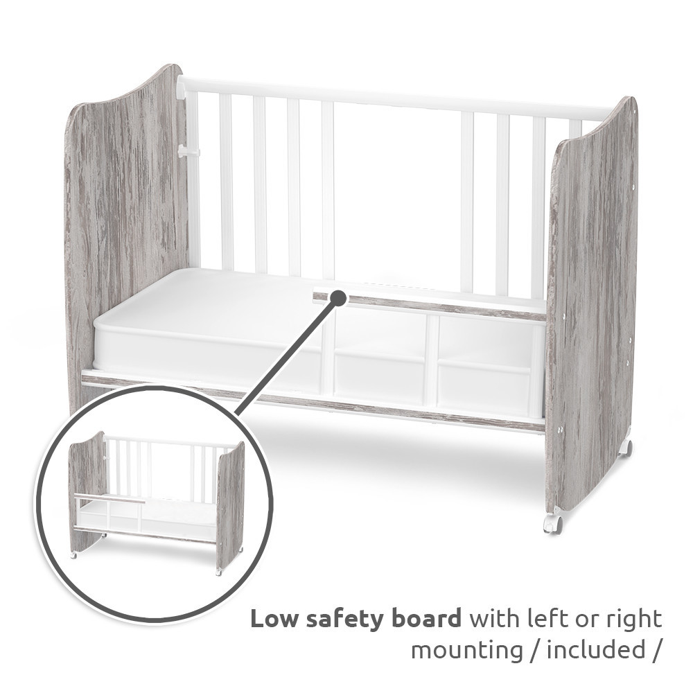 • Levehető elülső panelek, hogy a kiságy könnyedén alkalmazkodjon a család mindennapjaihoz