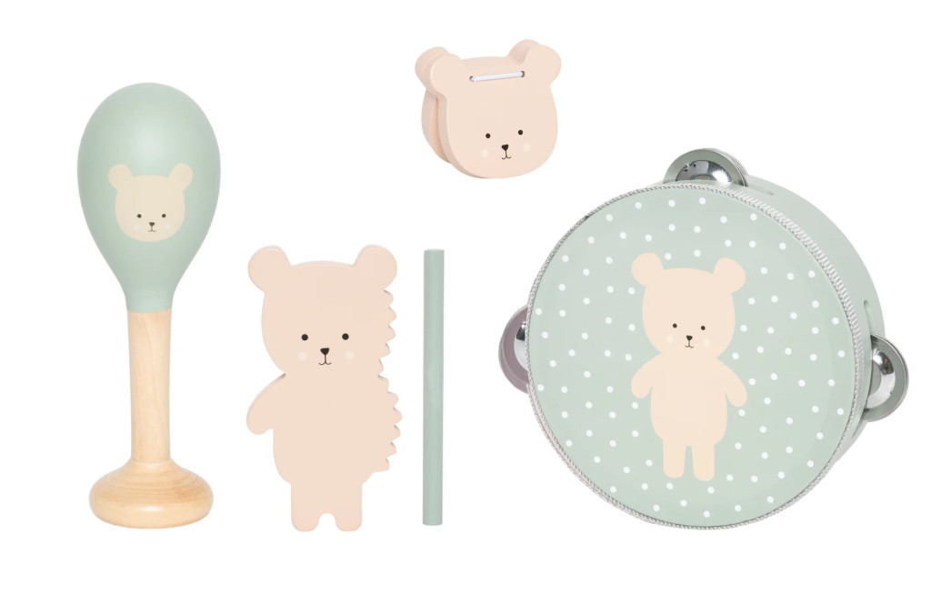 Engedd, hogy a kicsik felfedezzék a zene varázsát ezzel az imádnivaló hangszer készlettel! Ez a csomag mindent tartalmaz, ami a kis dallamok és ritmusok megalkotásához szükséges. Az összes hangszer lágy, természetes színnel és egy bájos maci arccal lett díszítve. Tökéletes a gyermekek zenei, koordinációs és ritmus érzékének korai életkortól történő fejlesztésére!