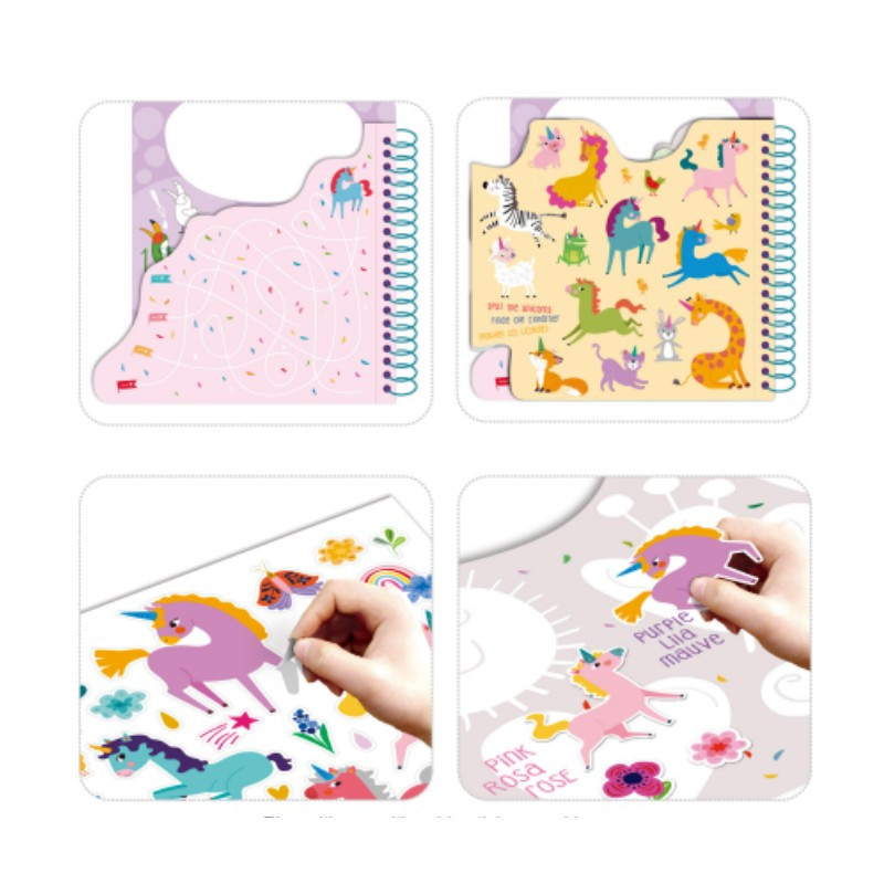 A lapozható színező könyvben logikai fejtörők és újra használható matricák is találhatók, így izgalmas játék vár rád akár utazás közben is!