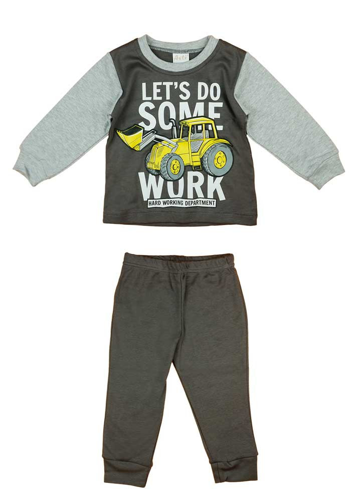 A kis munkásoknak tökéletes választás ez a markolós mintás kétrészes pizsama, ami a legédesebb álmokat garantálja. A szett hosszú ujjú felsőt és nadrágot tartalmaz, melyek minőségi, 100% pamutból készültek. A felsőn található markoló minta és felirat biztosan elnyeri a kisfiúk tetszését. A szürke szín pedig a praktikus, de mégis stílusos megjelenést biztosítja. A pizsama Magyarországon készült, az Andrea Kft. gyártásában, így garantáltan minőségi terméket kapunk. Az I. osztályú minőségű pizsama kényelmes viselet lesz az esti lefekvéshez. A termékeknél megadott életkor csupán irányadó, de a pizsama nagyszerű ajándék lehet minden kis markoló rajongónak.
