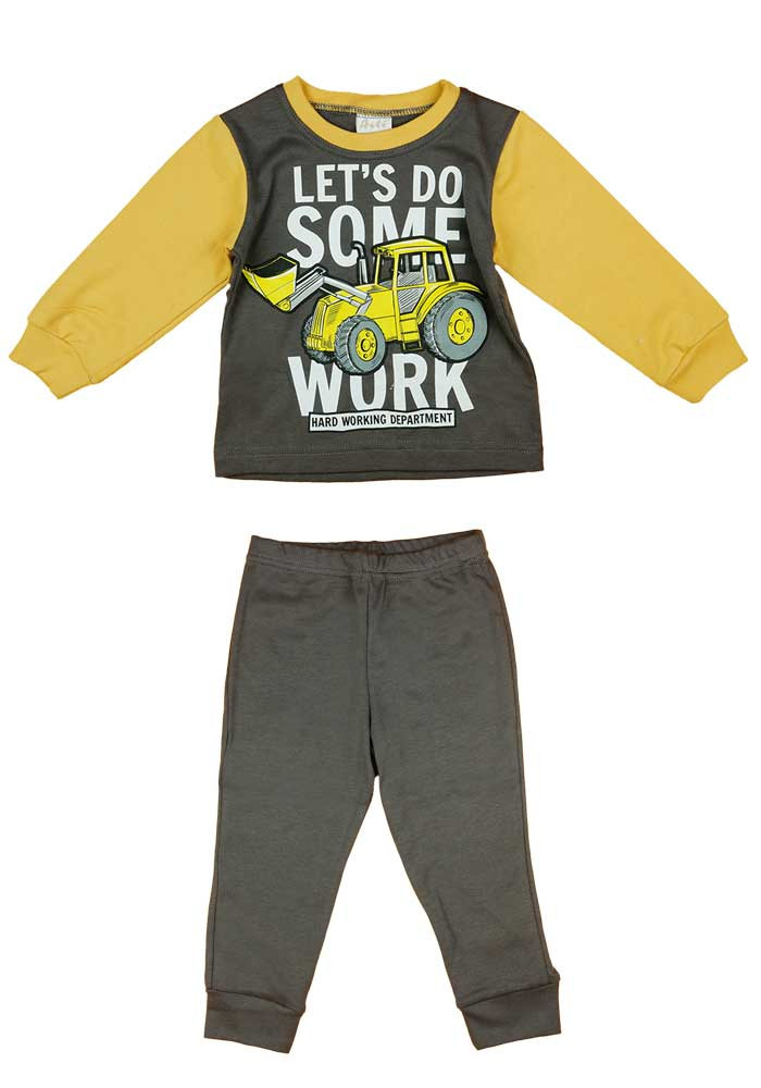 A legkisebb álmodozóknak is szükségük van a tökéletes pizsamára! Ez a markoló mintás kétrészes fiú pizsama minden kis építőmunkás álma. A vidám, markoló mintás, hosszú ujjú felső azonnal mosolyt csal az arcukra, míg a kényelmes pizsama nadrág garantálja a nyugodt alvást. A pizsama 100% pamutból készült, ami lágy, kényelmes viselet és ideális éjszakai kalandokhoz. Ez a minőségi magyar termék az Andrea Kft. gondos kezei által készült, így biztos lehet benne, hogy hosszú ideig kitart majd. Az általunk megadott életkor csak irányadó, de a pizsama rugalmas anyagának köszönhetően minden kisfiúnak tökéletesen illeszkedik majd.