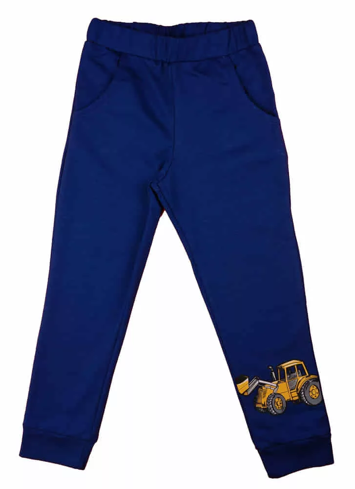 Ez a sötétkék színű, markoló mintás kisfiú szabadidőnadrág kiváló választás lehet a játékidőhöz, vagy akár az iskolába, óvodába is. A 100% pamut anyagának köszönhetően a nadrág könnyű, vékony és mégis tartós. A minta, mely egy sárga markolót ábrázol, az egyik száron található, ami igazán vidám és játékos megjelenést kölcsönöz a ruhadarabnak. A nadrág minőségét a magyar gyártás garantálja. Bátran ajánljuk ezt a kényelmes, strapabíró és divatos terméket, melyet kisfiad egész nap szívesen fog viselni.