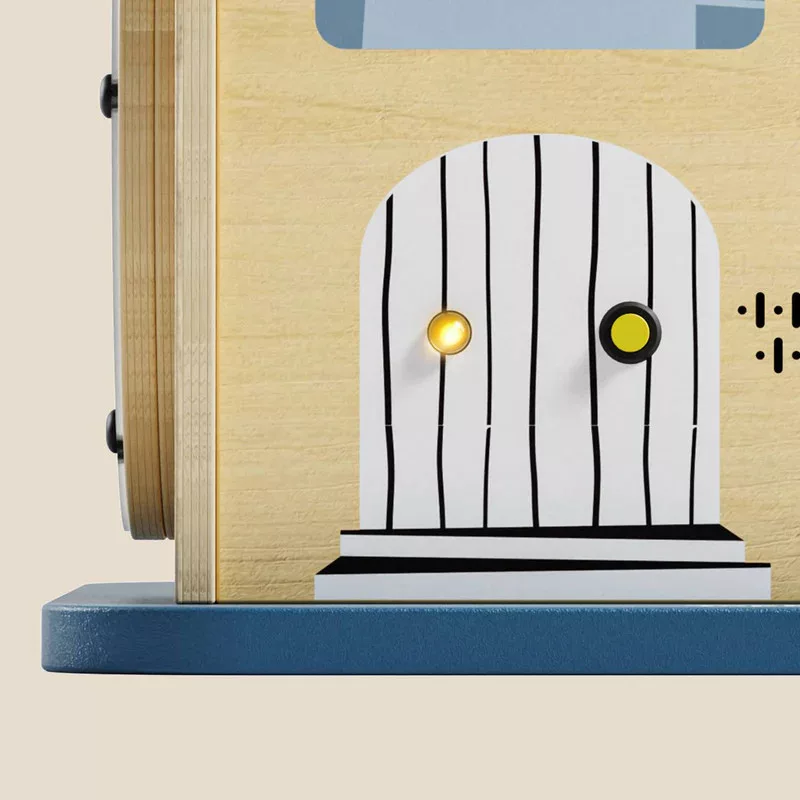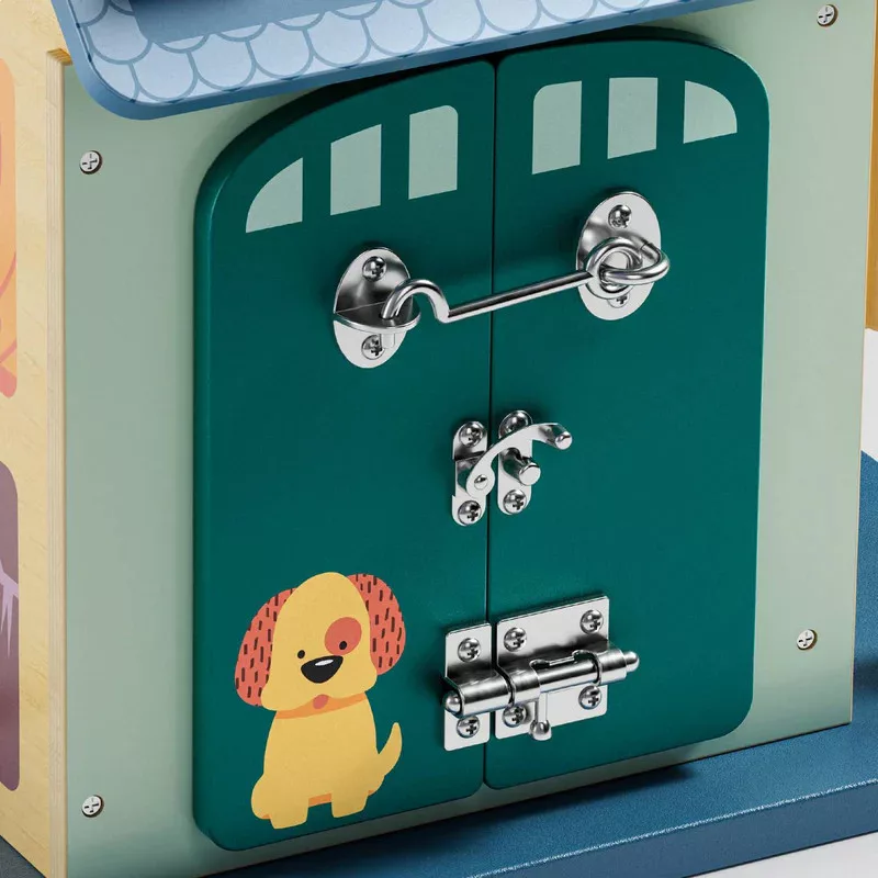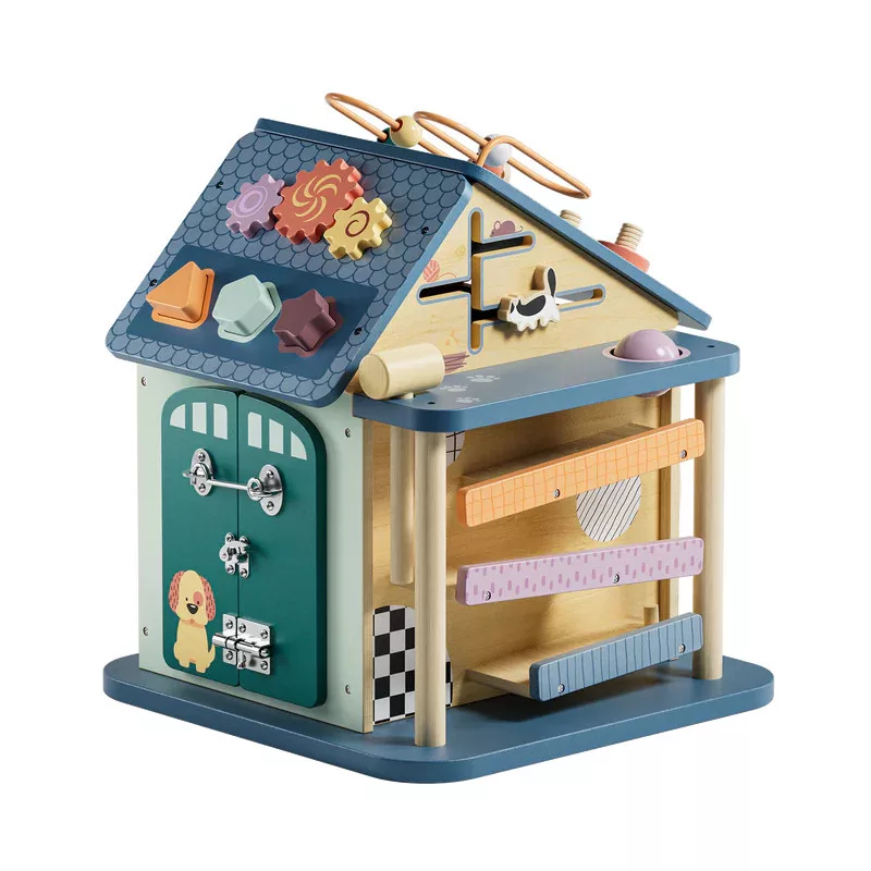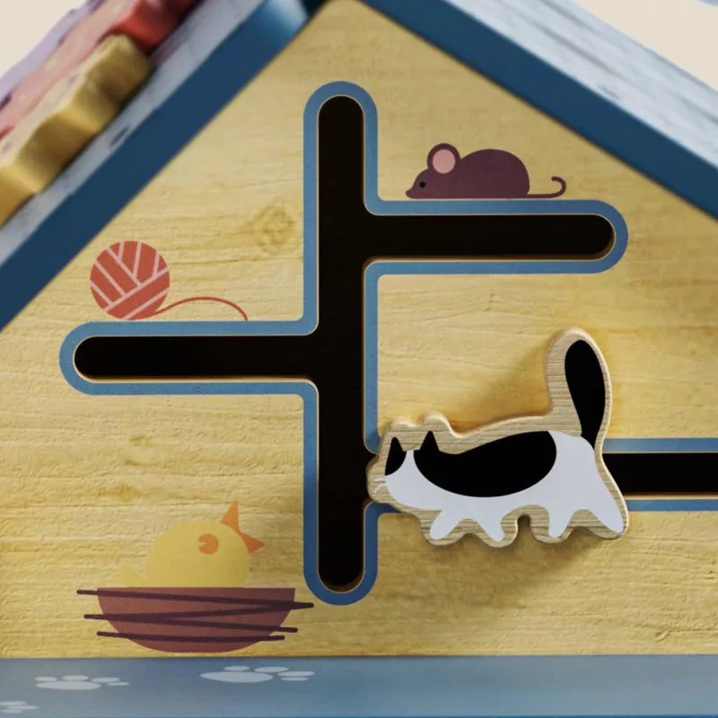 A bájos vidéki házikó 12 izgalmas érzékszervi és finommotoros tevékenységet biztosít a legkisebbe számára, többek között formaválogatást, fogaskerekek forgatását és világító kapcsolókat. A házikóra szerelt csavarok segítenek megtanulni a színek felismerését, miközben fejlesztik az illesztési készségeket és javítják az ujjmozgékonyságot és a markolási erőt. A színes gyöngyöket vezetve a kanyargós drótpályákon a kicsik a vizuális követést, valamint a pontosságot és a finommotoros kontrollt is gyakorolhatják.