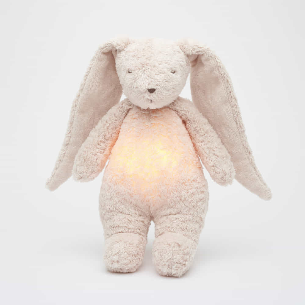 A nyuszi pocakja világít, és éjszakai fényként szolgál, hét világító szín közül választhat. A lágy fény segít a babának biztonságban érezni magát a kiságyban. A fény hangok nélkül is bekapcsolható, és egész éjszakára bekapcsolva hagyható. A nyuszi világítás közben semmilyen módon nem melegszik fel, és teljesen biztonságos a baba számára.