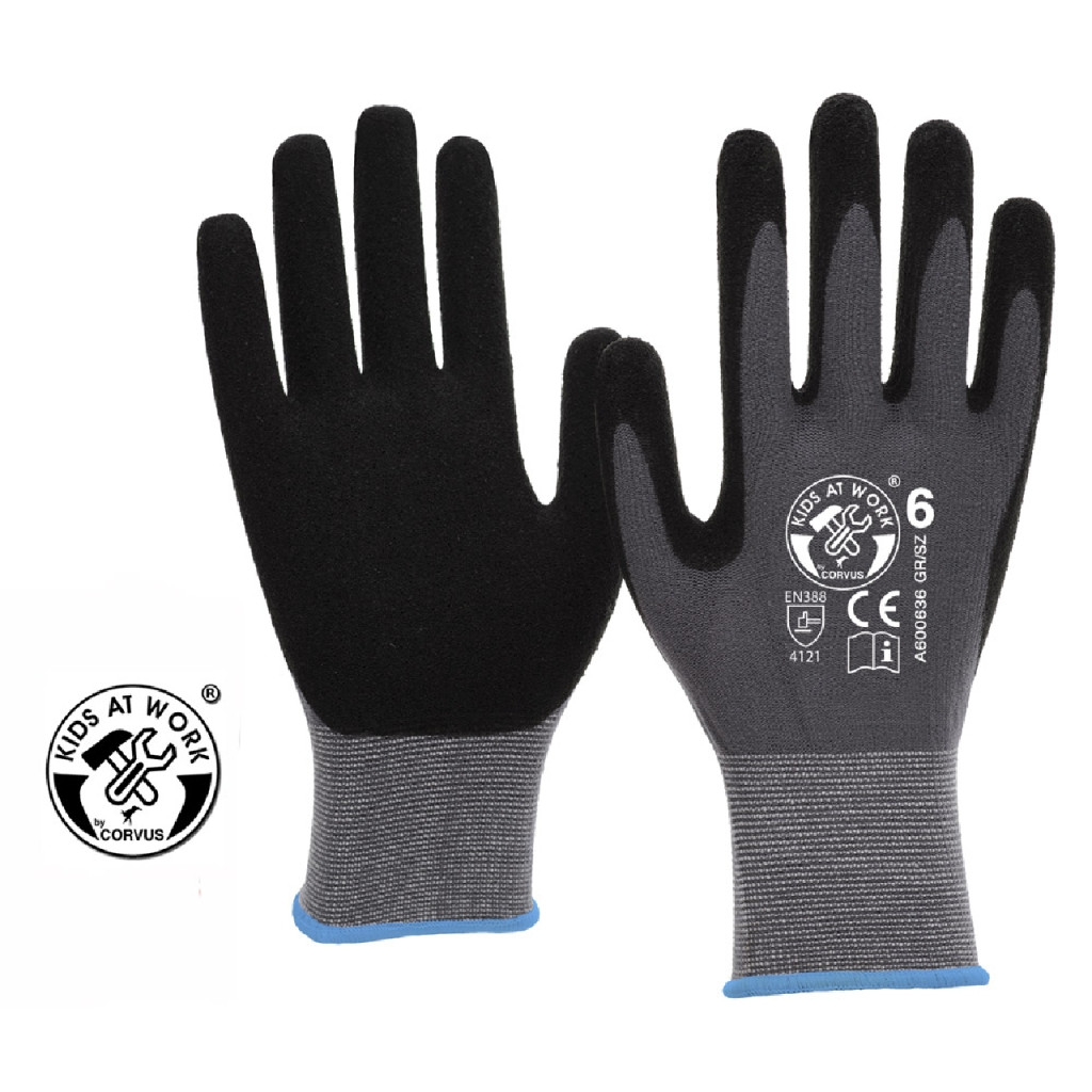A tenyéroldalon csúszásgátló anyaggal mártott munkakesztyű.