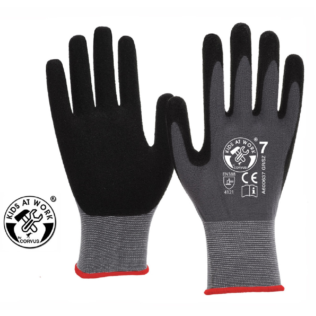 A tenyéroldalon csúszásgátló anyaggal mártott munkakesztyű.