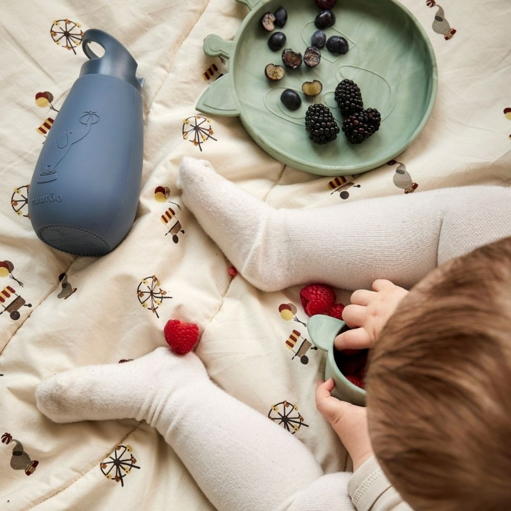 A NUUROO Pax ivópalack a tökéletes kiegészítője a kis felfedezők mindennapi kalandjainak! Az aranyos cirkuszi elefánt képe vidámságot kölcsönöz, amely garantáltan mosolyt csal a gyermek arcára. Az ivópalack 350 ml-es űrtartalmával tökéletes méretű a kicsik számára, és könnyen elfér az iskolatáskákban vagy a kirándulásokhoz szükséges hátizsákokban. A palack 100% LFGB szilikonból készült, ami nem tartalmaz káros vegyi anyagokat, így biztonságosan használható élelmiszerek tárolására. A fedél műanyagból készült és szorosan illeszkedik a palackhoz, így a benne tárolt ital friss és tiszta marad, miközben megakadályozza a kiömlést és a szivárgást. Kék színben pompázó dán design, amely minden gyermek kedvence lesz!
