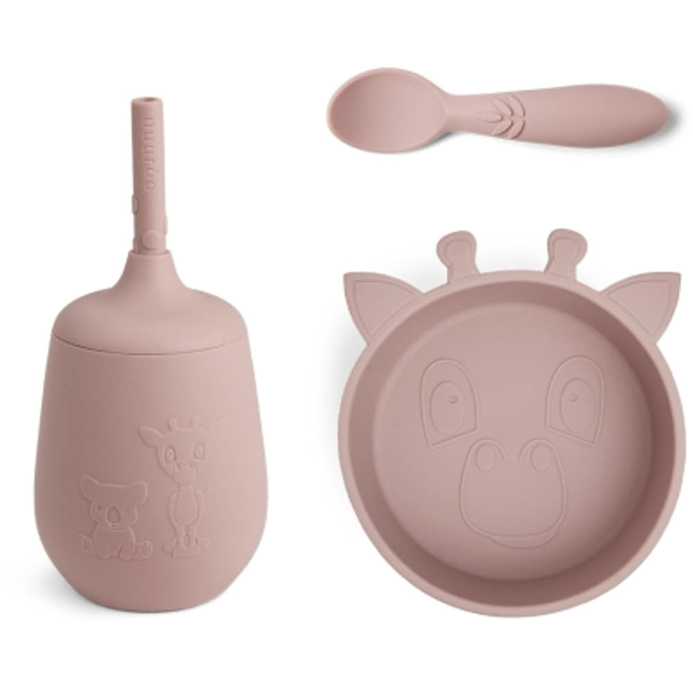 A Nuuroo három darabos étkészlete a legkisebbek étkezéseit teszi egyszerűbbé, izgalmasabbá és sokkal szórakoztatóbbá! Az étkészlet rózsaszínű, zsiráfos designja minden gyermek étvágyát felkelti. A mélytányér, a szívószálas ivópohár és a kanál ideális társai lesznek a kicsik mindennapi étkezéseinek, és segítségükkel az önálló evés is könnyedén elsajátítható. A készlet szilikonból készült, így nem csak hogy praktikus és nem törik, de mosogatógépben is mosható. Káros anyagoktól mentes, így bátran használható nap mint nap. Ajándéknak is tökéletes választás minden kisgyermekes családnak!