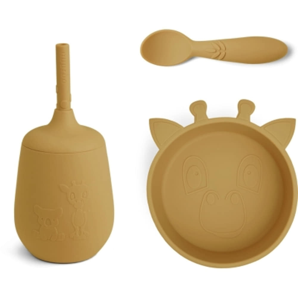 NUUROO Szilikon zsiráfos étkészlet 3 részes- Sárga