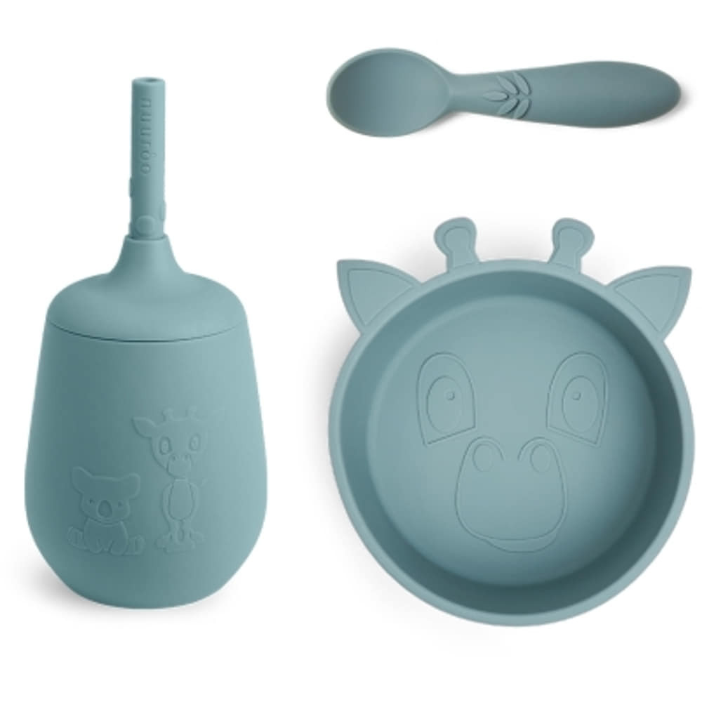 NUUROO Szilikon zsiráfos étkészlet  3 részes- Világokék