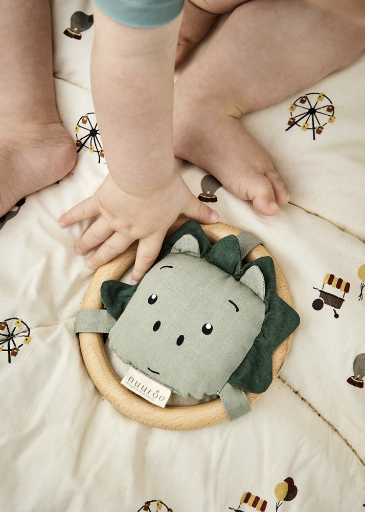 Fedezd fel a NUUROO dínó csörgőt, amely Dániából származik, és garantáltan elvarázsolja kicsinyedet! Emilie, a kis dínó puha, szórakoztató és hihetetlenül aranyos társ a játékban. Minősége kiemelkedő: 100%-ban organikus, kötött pamutból készült, ami gyengéd a baba érzékeny bőréhez. A csörgő része pedig FSC tanúsítvánnyal rendelkező bükkfából készült, ami biztosítja, hogy a termék környezetbarát és fenntartható erdőgazdálkodásból származik. A játék CE teszten is átesett, így biztonságos választás a legkisebbek számára. Emilie a dínóval a játék nem csak szórakoztató, de fejleszti is a bébi motorikus készségeit és érzékelését.