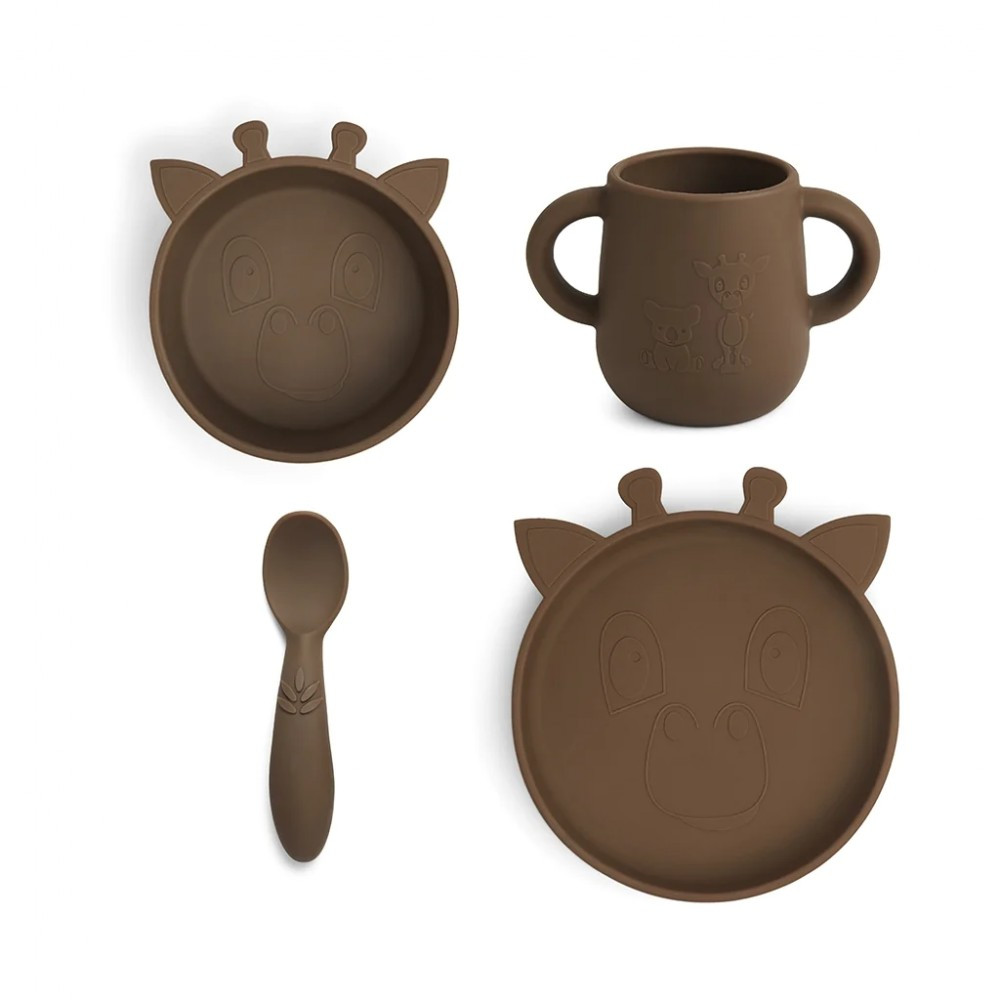 NUUROO szilikon 4 részes étkészlet- barna zsiráf