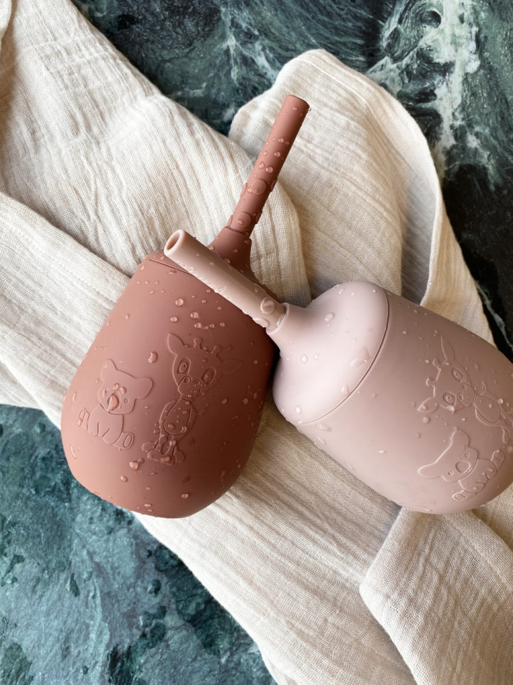 NUUROO szilikon pohár szívószállal- rózsa