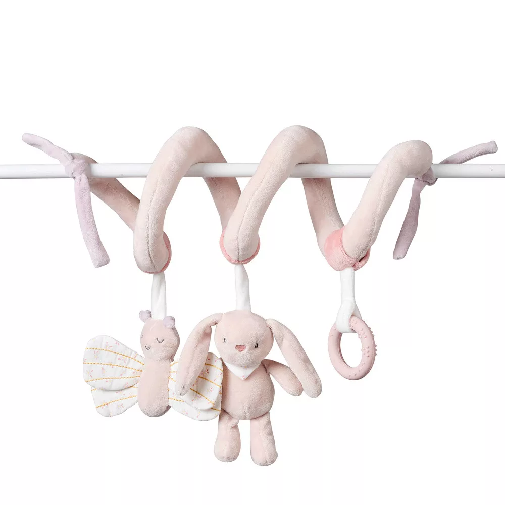 Ez a puha játékspirál szórakoztató tevékenységekkel ideális játszótárs babája számára. A különbözõ játékok csábításra hívják a babát, és több órányi játékidõt biztosítanak. Ez serkenti a baba fogási reflexét és hallásérzékelését. A játékspirál egyszerûen rögzíthetõ kiságyra, járókára vagy autósülésre. Szórakozás otthon és útközben!