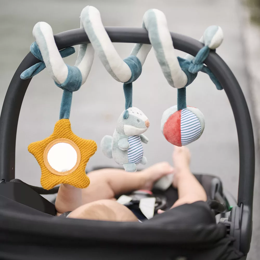 Ez a puha játékspirál szórakoztató tevékenységekkel ideális játszótárs babája számára. A különbözõ játékok csábításra hívják a babát, és több órányi játékidõt biztosítanak. Ez serkenti a baba fogási reflexét és hallásérzékelését. A játékspirál egyszerûen rögzíthetõ kiságyra, járókára vagy autósülésre. Szórakozás otthon és útközben!