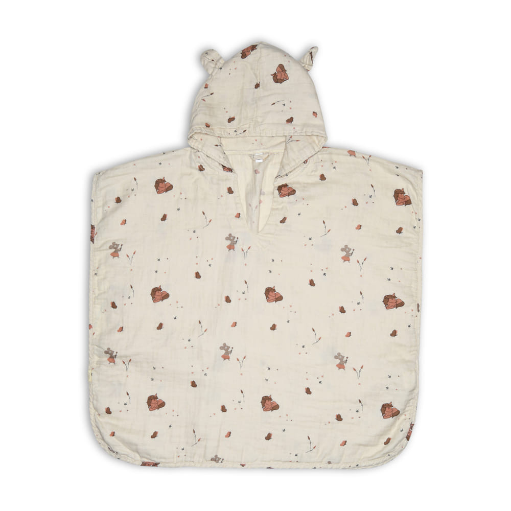 A Flor muszlin poncsó tökéletes, hogy magaddal vidd nyaralásra vagy hosszú zuhanyozás után. A puha anyag melegen tartja a kicsiket.