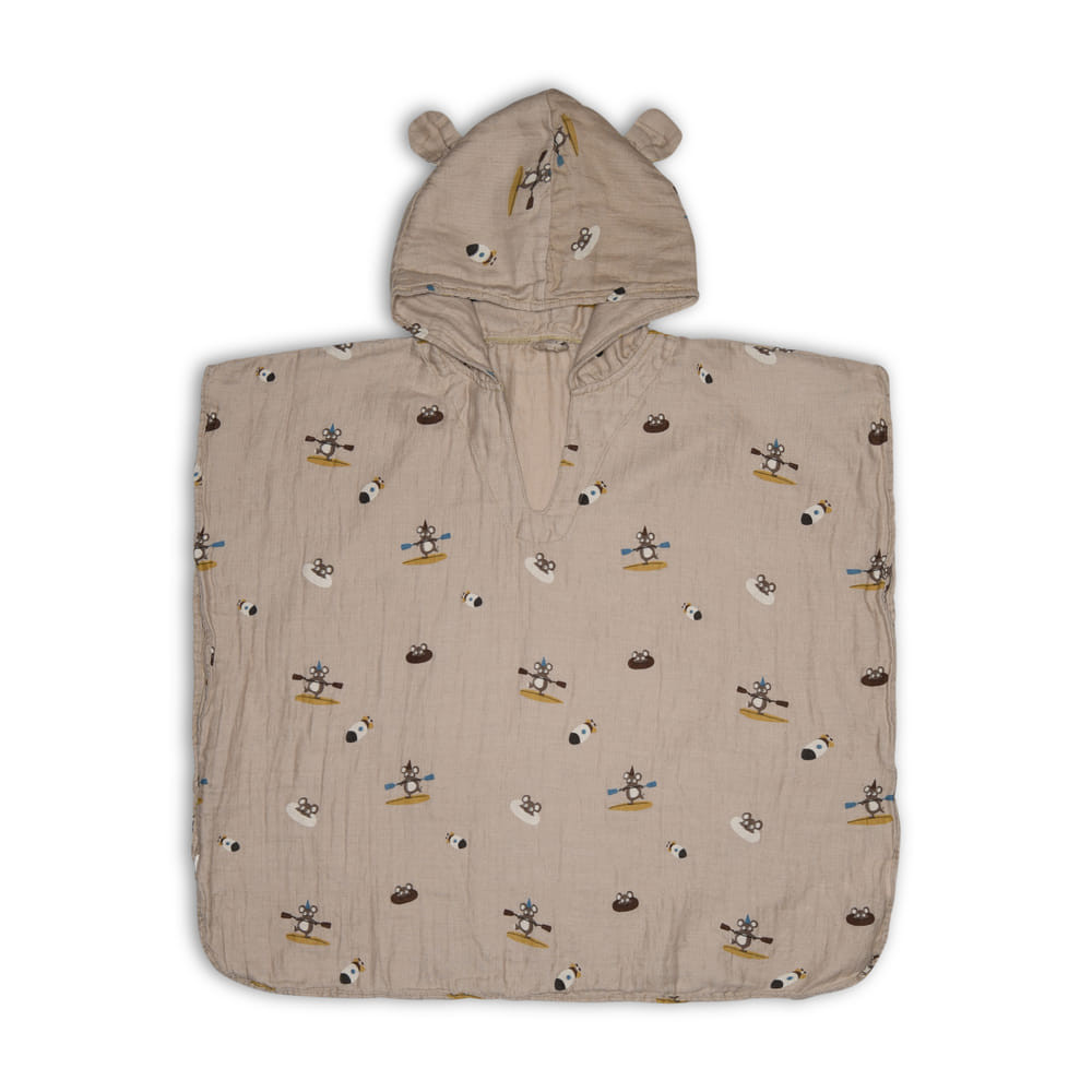 A Flor muszlin poncsó tökéletes, hogy magaddal vidd nyaralásra vagy hosszú zuhanyozás után. A puha anyag melegen tartja a kicsiket.