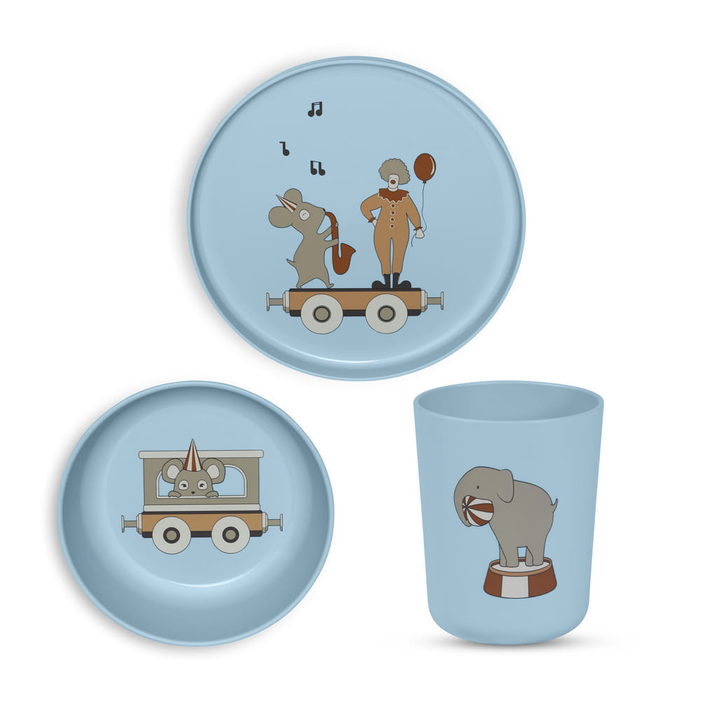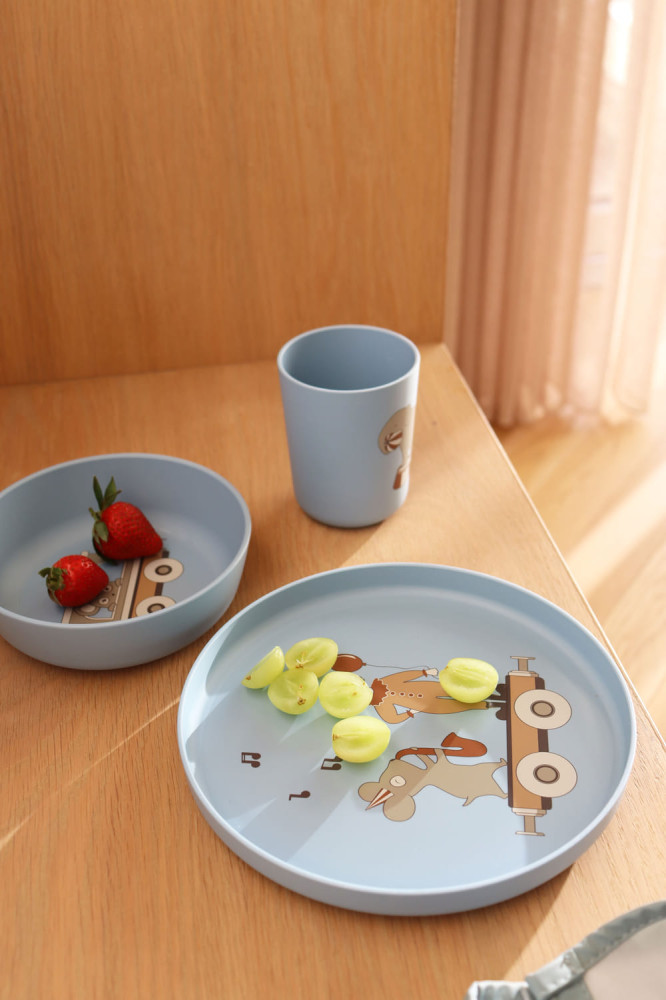 Milas étkészlet 3 részes 100% PLA-ból készült, és mosogatógépben mosható.
