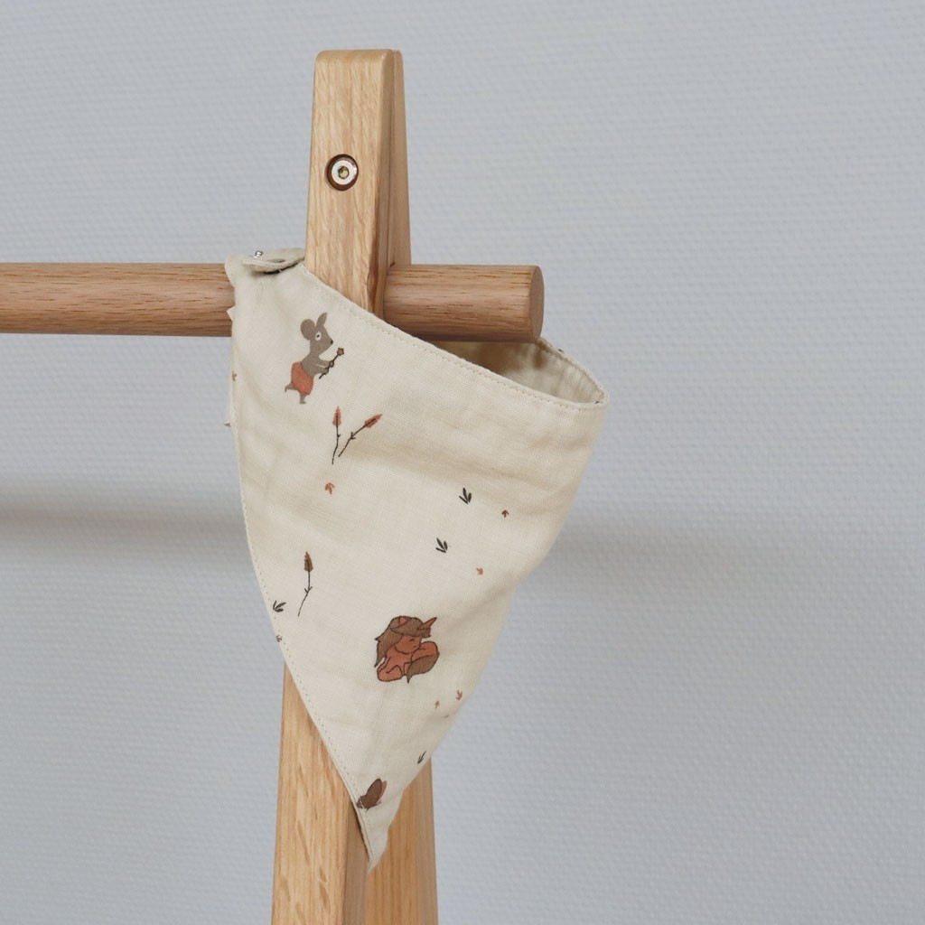 A Villads muszlin előke egyszerre praktikus és stílusos – tökéletes kiegészítő a baba ruhatárába, természetes anyagokból, skandináv letisztultsággal.