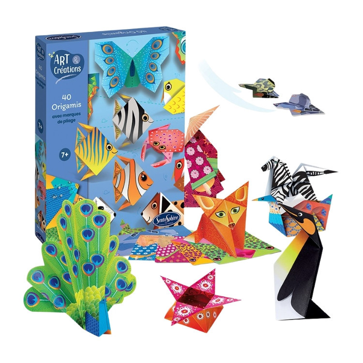 A Sentosphere Origami készlete vidám, színes, mintás papírokat tartalmaz.