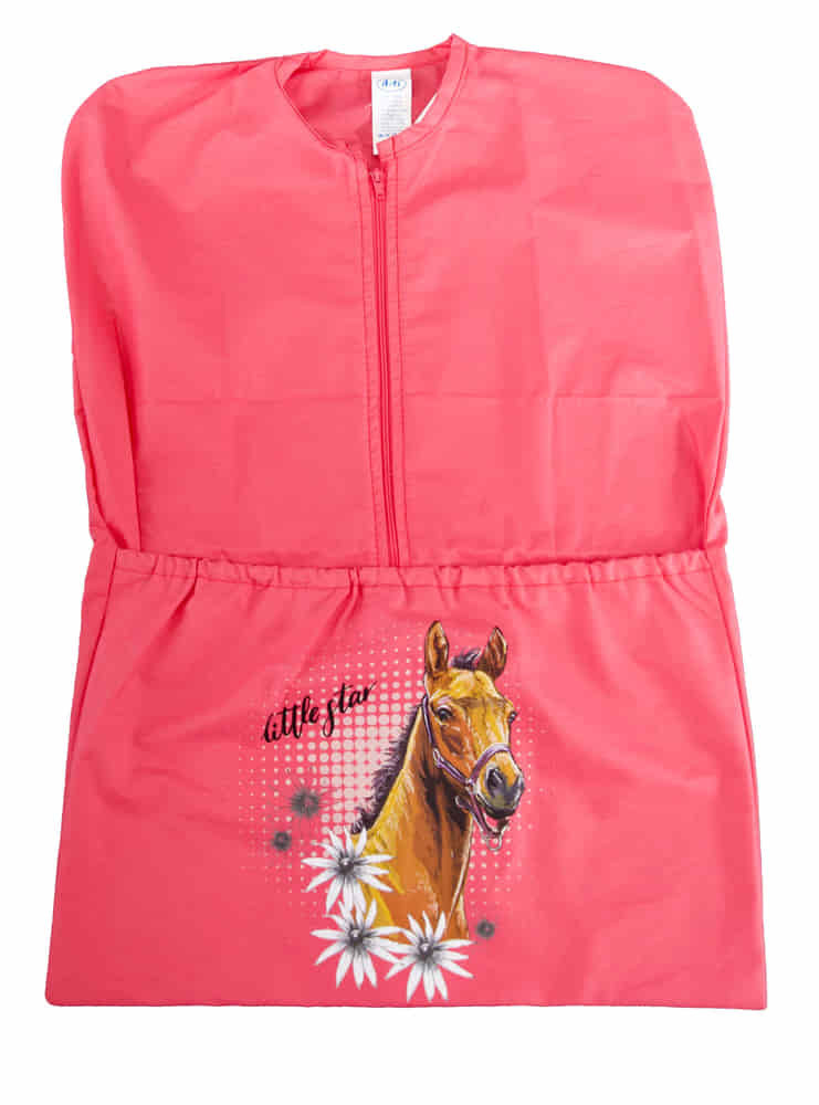 Tündéri lovakkal díszített oviszsák, amely minden kislány kedvence lesz! A sötét pink színű, elöl cipzáras oviszsák praktikus, és sok óvodában, bölcsődében kötelező viselet. Nagy méretének köszönhetően a gyerkőc minden ruhája kényelmesen elfér benne. A tiszta pamutból készült, szín- és formatartó zsák könnyen kezelhető, jól mosható anyagból készült, így éveken át hűséges társa lesz gyermekednek az ovis évek alatt. Minőségi magyar termék, amely megkönnyíti a reggeli készülődést és biztosítja a gyerkőc ruháinak biztonságos tárolását. Anyaga: 100% pamut, I. osztályú minőség.