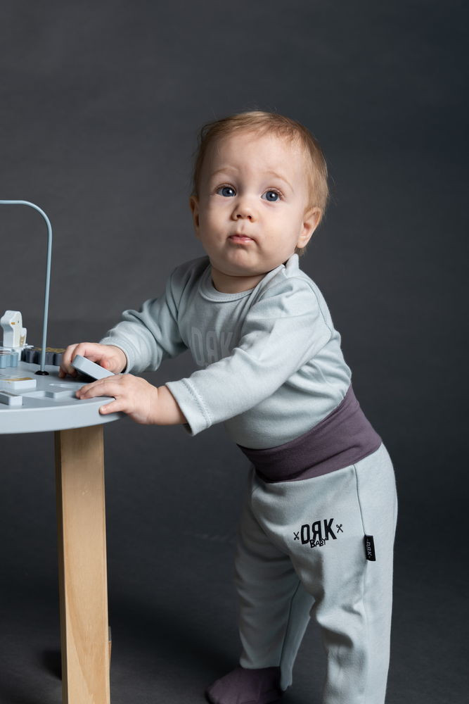 Puha, meleg és kényelmes - ez a pamut baba nadrág a legjobb választás a hidegebb hónapokra. Barack színű nadrágban a kis huncutok ellenállhatatlanul cukik lesznek, míg a DRK minta még a legkomorabb napokon is mosolyt csal az arcukra. Az elasztikus gumis derék könnyen alkalmazkodik a babák mozgásához, biztosítva a tökéletes illeszkedést és kényelmet. A lábfejes kialakítás pedig segít megtartani a meleget a kicsik lábán. Könnyen kezelhető, szín- és formatartó minőségi anyagból készült, így tökéletes választás azok számára, akik szeretnének egy praktikus, mégis stílusos darabot a babájuk szekrényébe.