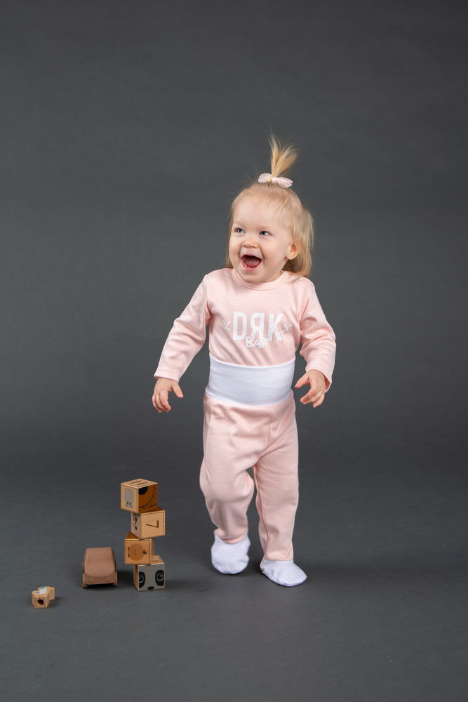Puha, meleg és kényelmes - ez a pamut baba nadrág a legjobb választás a hidegebb hónapokra. Barack színű nadrágban a kis huncutok ellenállhatatlanul cukik lesznek, míg a DRK minta még a legkomorabb napokon is mosolyt csal az arcukra. Az elasztikus gumis derék könnyen alkalmazkodik a babák mozgásához, biztosítva a tökéletes illeszkedést és kényelmet. A lábfejes kialakítás pedig segít megtartani a meleget a kicsik lábán. Könnyen kezelhető, szín- és formatartó minőségi anyagból készült, így tökéletes választás azok számára, akik szeretnének egy praktikus, mégis stílusos darabot a babájuk szekrényébe.