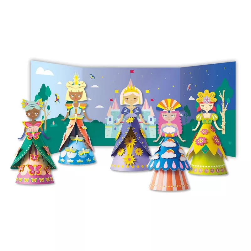 Készíts meseszép 3D hercegnő figurákat és díszítsd fel ruháikat papír virágokkal!