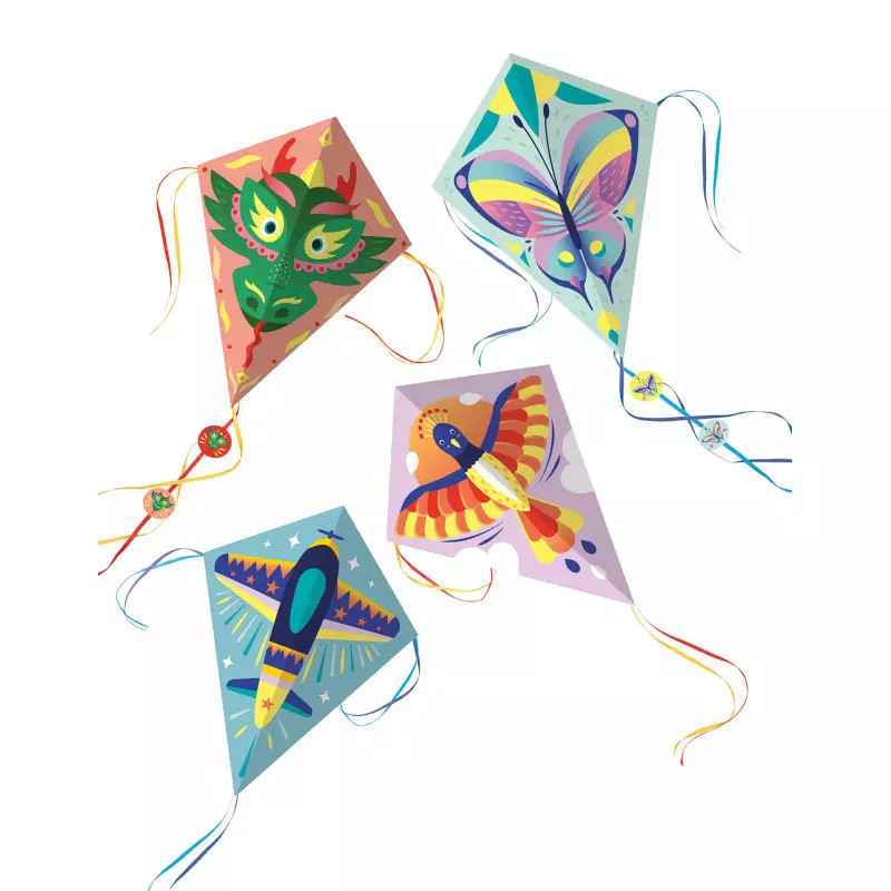 Ebben a készletben minden megtalálható, ami 4 szuper papírsárkány elkészítéséhez szükséges:
