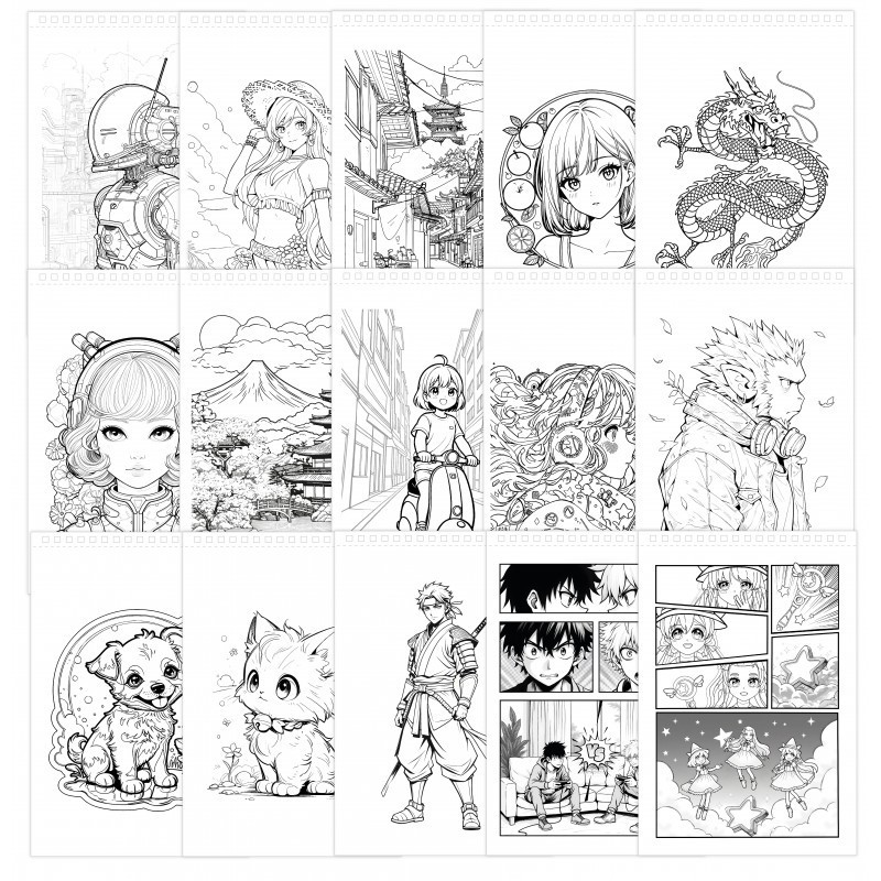 - egy A5-ös méretű színezőfüzet 25 kivehető ívvel (15 előre megrajzolt lap és 10 üres lap)