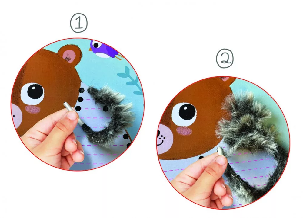 A cipőfűző végű fonalakkal az állatoknak puha bundát készíthetsz! Fűzd őket végig az előre perforált képeken és az állatok megelevenednek! A játékot bármikor elölről kezdheted, hiszen a szálakat kihúzhatod és újra befűzheted, a színeket is cserélgetheted.