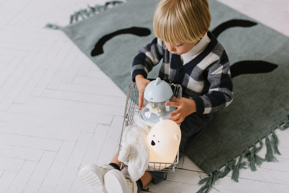 CHICKLET lámpa körhinta zenedobozzal - a kék garantálja a legkisebb gyerekek nyugodt alvását nappal és éjszaka egyaránt. Nyugtató társaságot biztosít és támogatja az egészséges, rendszeres alvás kialakulását. A lámpa serkenti a vizuális-auditív koordináció fejlődését egy gyermeknél, amely az első életévben kezdődik. A zenedoboz nyugodt, finom hangjai minden babát megnyugtatnak és pihentető hangulatot teremtenek.
